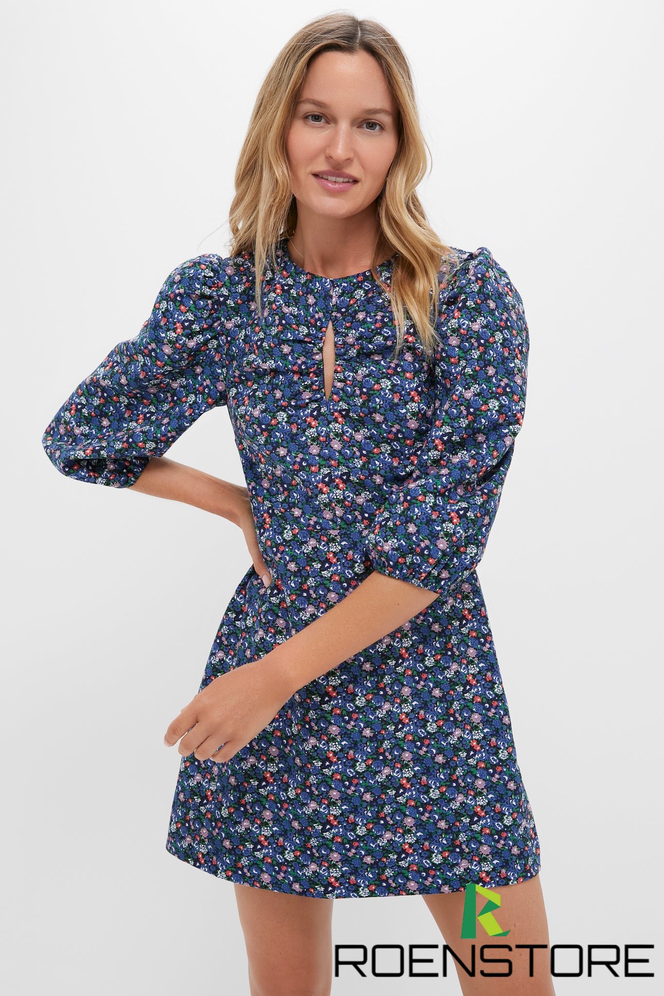 Black & Navy Corduroy Floral Keyhole Moore Mini Dress